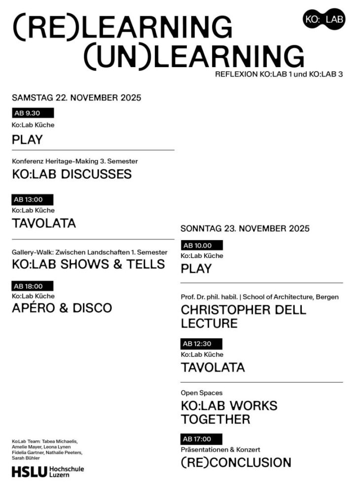A big thank you to the Ko:Lab team—Tabea Michaelis, Amelie Mayer, Leona Lynen, Fidelia Gartner, Nathalie Peeters, and Sarah Bühler for making this happen! We are ooking forward to an intensive and inspiring weekend full of (un)learning and (re)learning—and to thinking together about how a new planning culture can be shaped today and in the future.